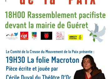 jeudi 21 septembre journée internationale de la paix à 18H00 devant la Mairie de Guéret.