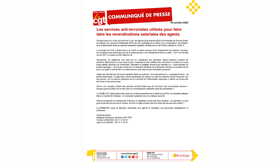Les services anti-terroristes utilisés pour faire taire les revendications des agents de RTE