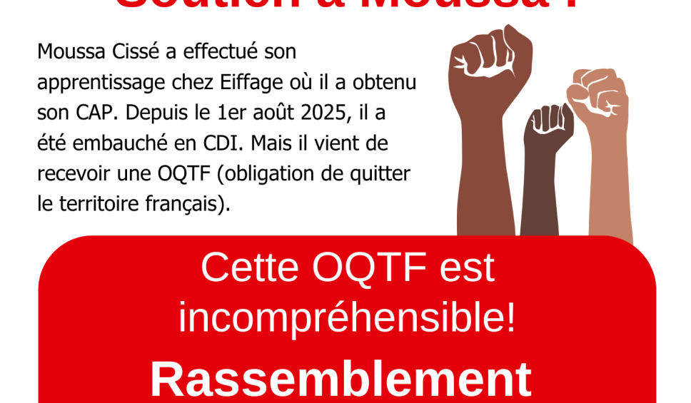 Moussa Cissé a effectué son apprentissage chez Eiffage où il a obtenu son CAP. Depuis le 1er août 2025, il a été embauché en CDI. Mais il vient de recevoir une OQTF (obligation de quitter le territoire français).